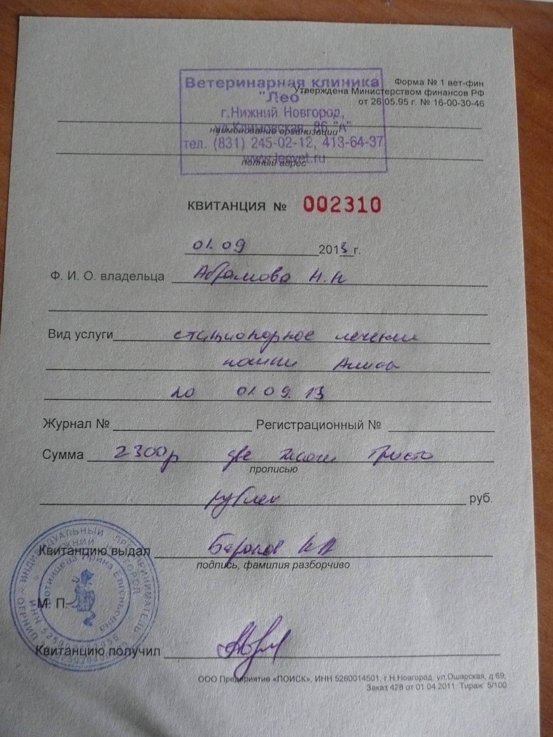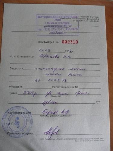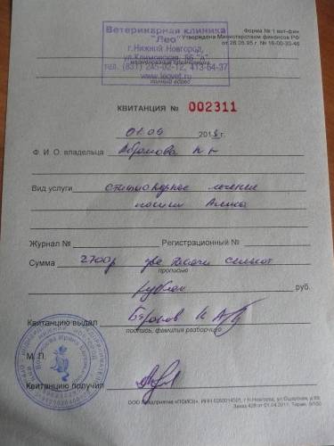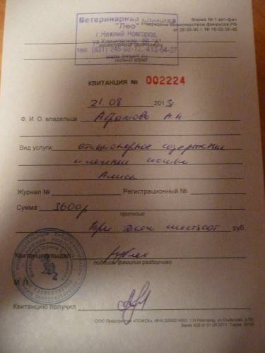 Сегодня была в клинике. Отвезла корм. Оплатила 3600