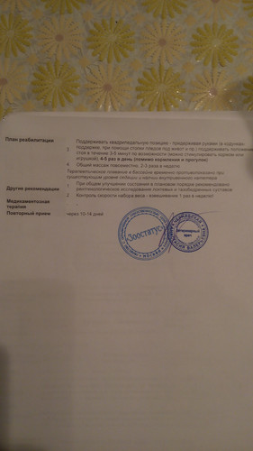 Доброй ночи, друзья! С бассейном не получилось. Реабилитолог сказала, что в таком сонном состоянии плавать НЕЛЬЗЯ! Надо ее выводить из этого состояния. Консультируемся с Субботиным, по поводу коррекции терапии. Будем снижать дозы препаратов. Вот! А мы так надеялись! Показали, что можно делать пока. Будем выполнять. Вот такие у нас дела