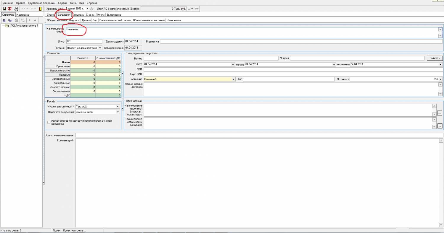 Открываете смету