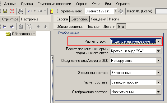 alexandrar, в заголовке сметы выберите вкладку "вид", а там - "Расчет строки - И шифр и наименование"