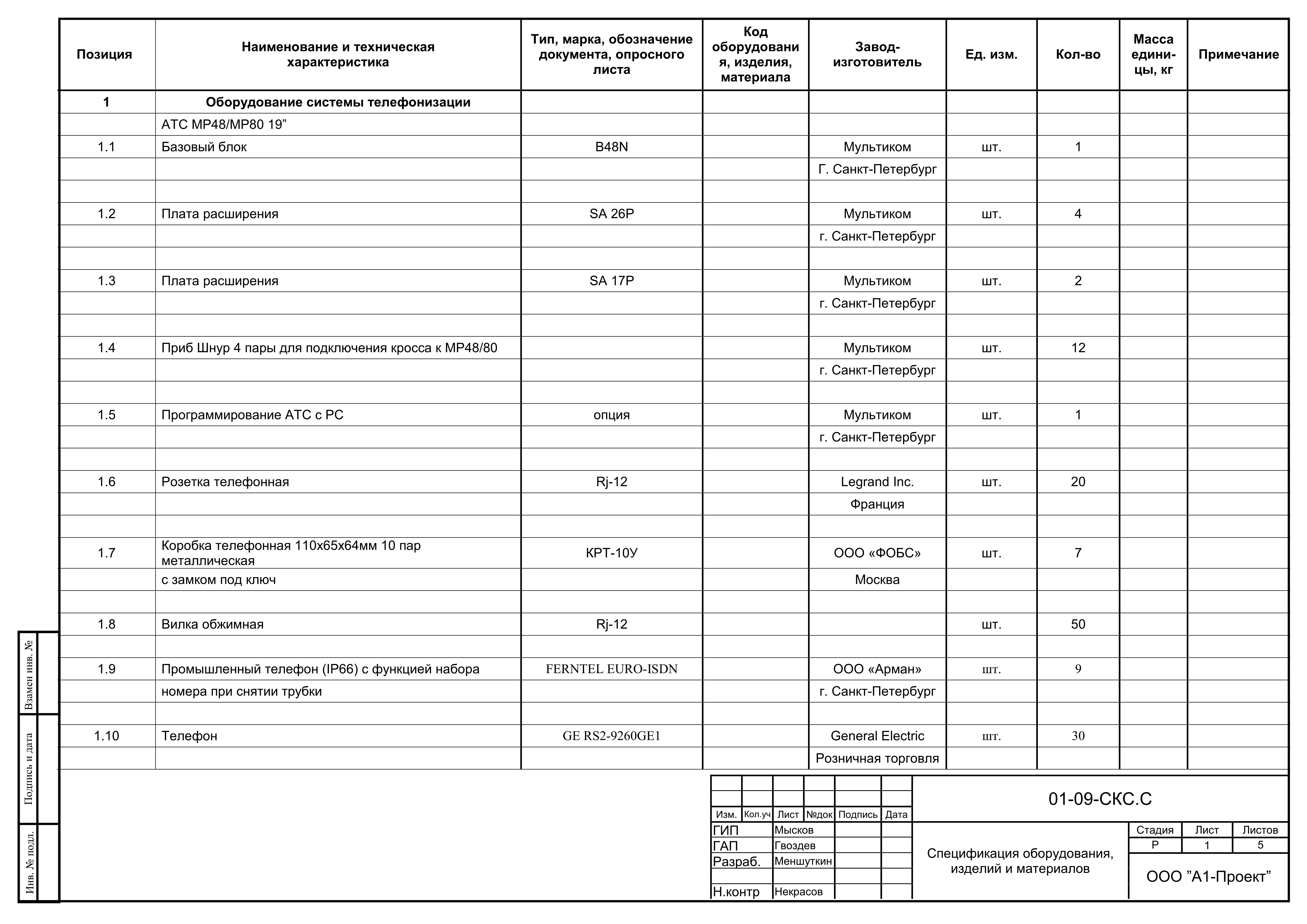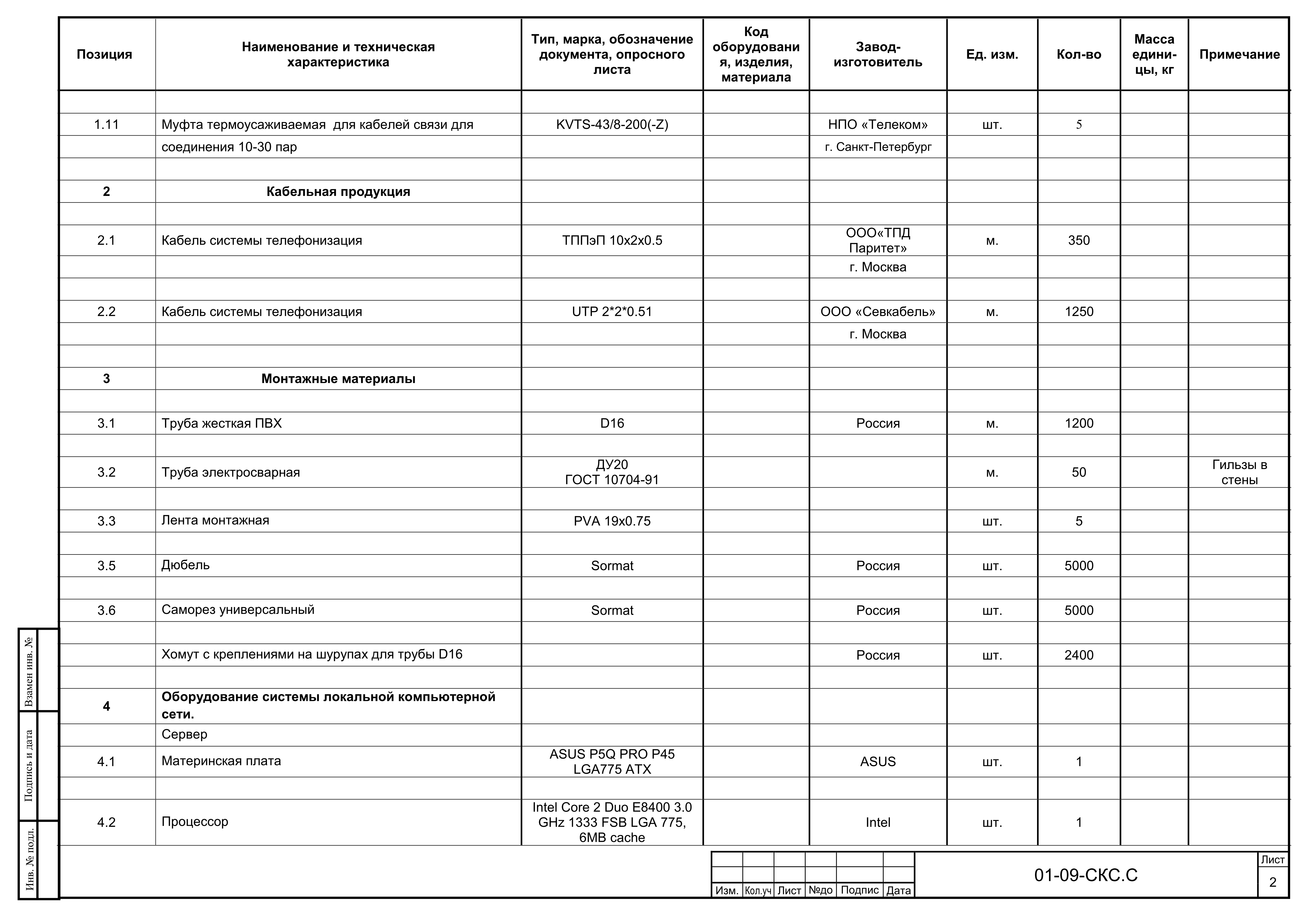 По проекту у меня следующие претензии: В телефонии при монтаже в шкафы как правило вместо коробок используются кросс- или патч-панели, о чем косвенно говорит использование патч-кордов (поз. 1.4 в спецификации). В локальной сети отсутствуют патч-панели и соответственно патч-корды, ПО. Вот мое видение сметы с комментариями: