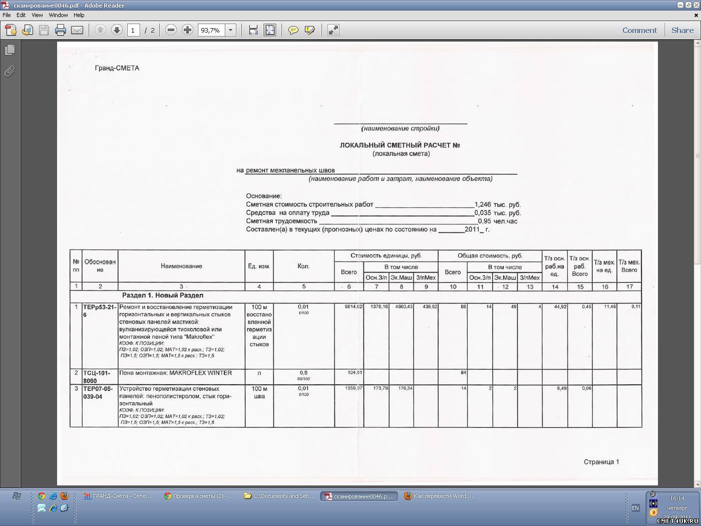 Sane4ka, Смету заказчика могу выложить только отсканеную, у меня бумага перед глазами, электронной версии нет. Сейчас займусь сканированием.