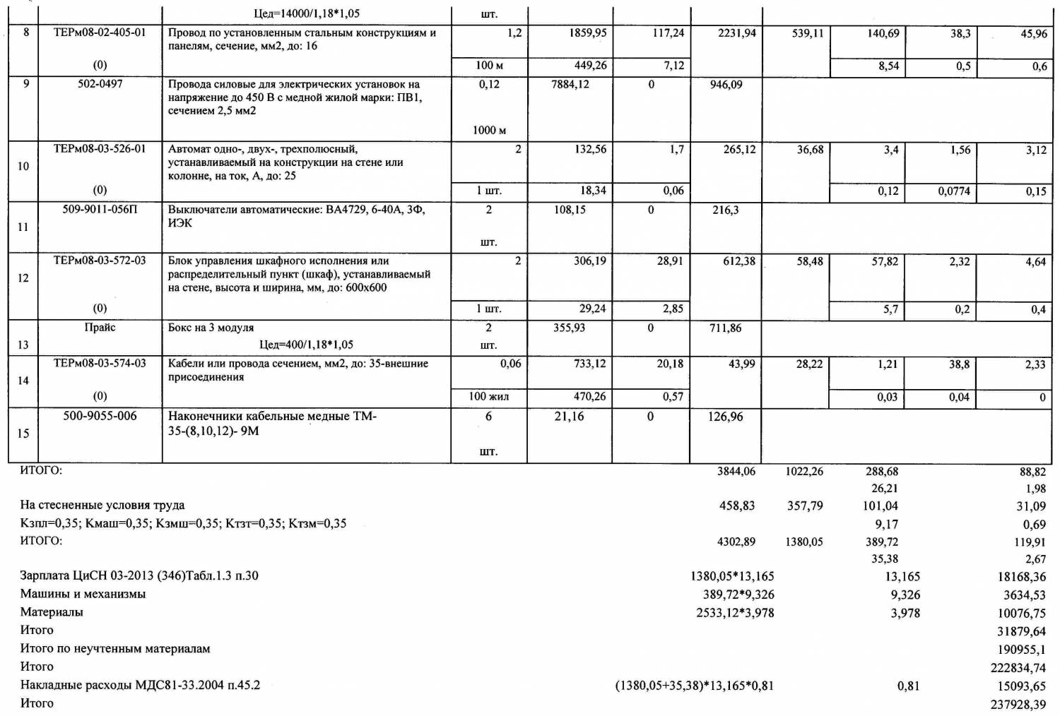 Hadgime, счетчики типа СЭТ в ТП я обычно беру по ФЕРм 08-01-080-01, все-таки это не обычные бытовые счетчики. Ну и стандартная ошибка по поводу выключателя на дин-рейку, его по 08-03-575-01 нужно брать, да и то, если он на месте устанавливается, а не производителем шкафа. Наконечники учтены в расценках по 574 группе, дополнительно покупать не нужно.