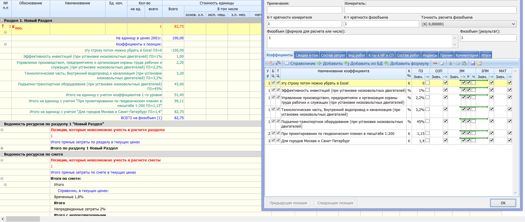 Добавлено (21.11.2013, 18:45) --------------------------------------------- попыталась в ГрандСмете воспроизвести - она у меня умножает на % стадий рабочий документации, т.е. считает каждый раздел как дополнительный коэффициент (например, раздел Конструктивные и объемно-планировочные решения = 15% - выбираю эту строку в коэффициентах и получаю Х1,15 . И цена заоблачная получатся... наверное, я где-то туплю...