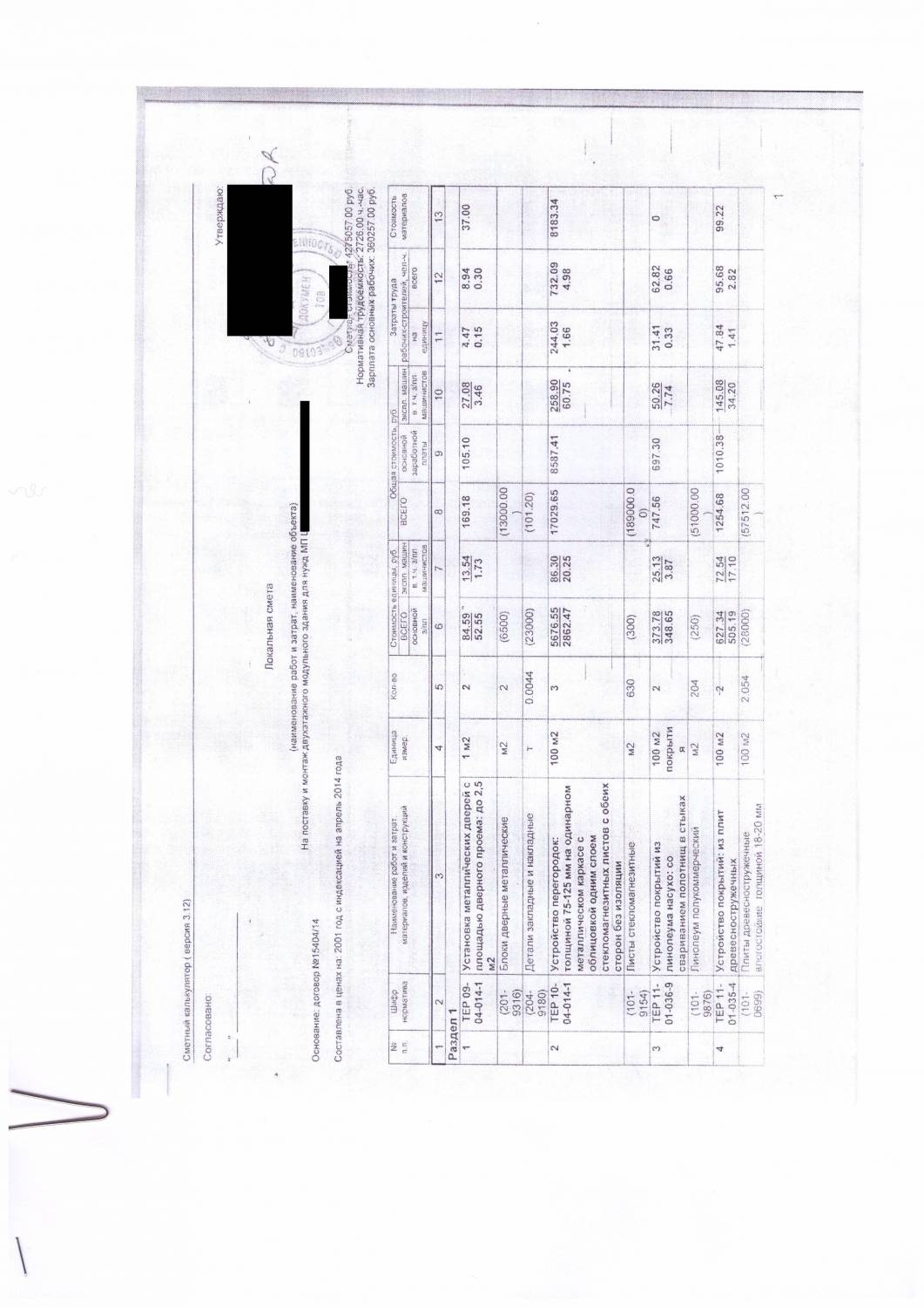 LeysLena, если у Вас здание временное- то и расцениваться должно по ТЕР 21 "Временные сборно-разборные здания" плюс стоимость материалов. т.к. у Вас 18 блоков-контейнеров взять расценку ТЕР(ФЕР) 21-01-021-01. В смете расценивается всё по отдельности , причем расход материалов непонятно чем обоснован. Лестница 2т, площадки-4 т, стропила 4м3,каркас- 10м3 дерева, хотя у Вас каркас из металла- 16т! Кровля 200м2, а полы дощатые- 250м2, дсп и линолеум- по 200м2, хотя скатная кровля по площади должна быть больше, чем площадь полов...А уж изоляция полов- вообще песня-10*100=1000м2!!!!! Перегородки на 200м2 пола - 300м2 перегородок??? Это где же столько нагородили-то??? Короче- нужно от подрядчика требовать план здания, подсчет всех! объемов материалов, причем стоимость материалов -ссылка не на пункт ТССЦ, причем без цены, а ссылка на конкретный прайс или счет с приложением этого документа, т.к. профлист у Вас очень интересно дан -с погонного метра, а монтаж- с м2, какой Вам подсунули профлист, какой ширины, какой марки- непонятно... То же самое касается всех остальных материалов... Дверь металлическая- если прайс- то учтена вся скобянка и никаких доп. деталей закладных и накладных не должно быть, либо пусть обосновывают... Похоже, обвязывают 18 контейнеров, но все должно быть обосновано чертежами и ведомостью объемов работ и материалов. Чем обосновывают транспортные затраты 8,9%? Необходимо обоснование, либо стоимость транспортных затрат должна приниматься по фактическим расходам- расчет на сколько км везут-откуда-куда плюс погрузка-разгрузка. Накладные расходы взяты не по расценкам, а уж если берут по укрупненке- тогда надо брать в соответствии с МДС 81-33.2004 ПРИЛ.3 ( у Вас промышленное строительство или гражданское или еще какое?) с коэффициентом 0,85 , т.к. индексы взяты по статьям затрат. Сметную прибыль берут 8%- ну это их дело, у Вас меньше затрат... Коэффициент на стесненность взят 1,2% -непонятно чем обоснован, т.к. в лучшем случае можно применить МДС 81-35.2004( в ред.2012г.) прил.1 табл. 1 п. 4 либо п. 7 -в зависимости от расположения возводимого объекта. По поводу применения К=0,85 к НР : Министерство регионального развития РФ 21 февраля 2011 г. Письмо № 3757-КК/08 Ну вот пока навскидку замечания....