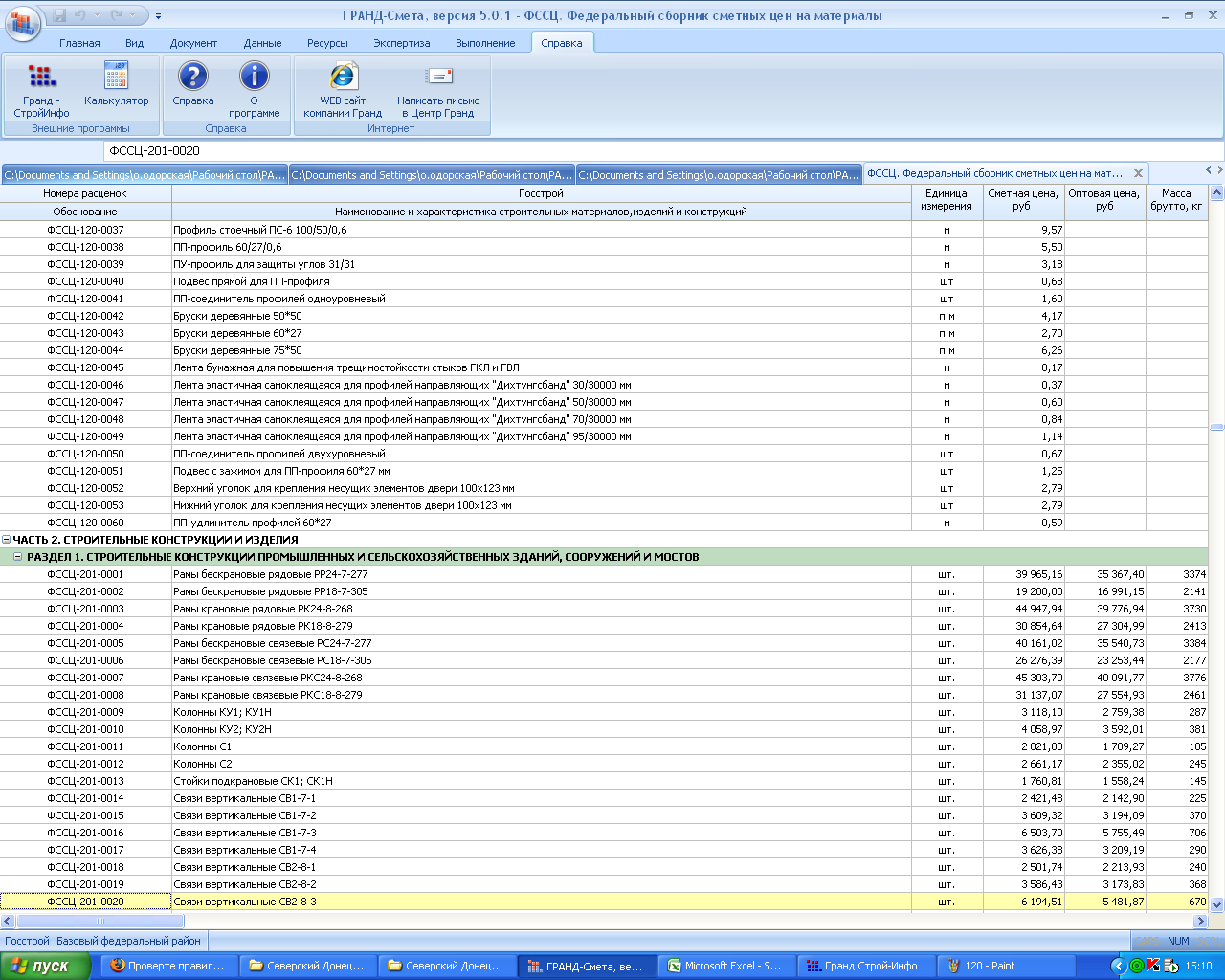 Oolga, А ради спортивного интереса не посмотрите у вас в гранде в ценниках на мат-лы есть раздел 120? Почему спрашиваю - расценка 10-05-001-01 содержит 12 наименований материалов с этим кодом, т.к. у меня его нет, то я даже профили под ГКЛ не могу сменить, может это тоже глюки винсметы, а в другой проге это устраненно?? Спасибо, заранее.