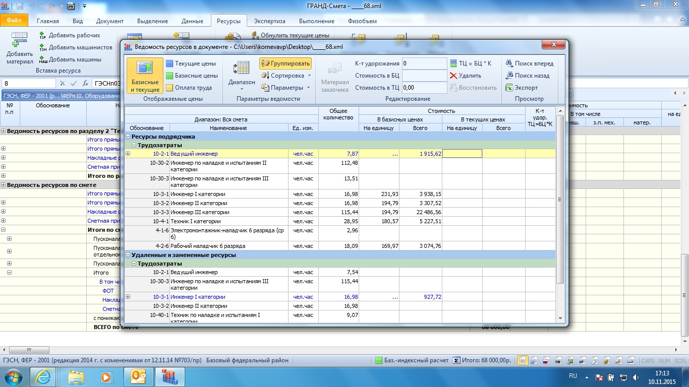 $Viktoriya$, пересчитывайте все. восстанавливайте до исходников, расценки, а то вы там позаменяли чего-то. далее - ресурсы - вкладка "ресурсы". в ресурсной ведомости проставляем текущие цены. то что вы сделали в вашей смете - извращение ))) смотрите скрин