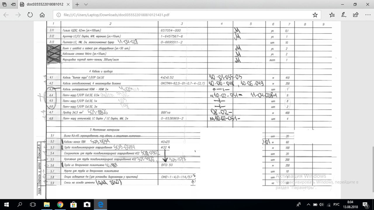 alena2407, п. 8 отдельно расцениваем п. 16 как плата на готовое место по м10 п. 17 - я бы настроил еще п. 31 - я бы поменял.. почитайте форум п. 35 - это оптический кросс, м10 п. 46 - не.. меняйте согласно технологии. У вас и труба есть и кабель-канал, и каб. канализация.. Каб. канализацию в отдельный раздел выносите, так читабельней будет п.67 и 68 для чего?