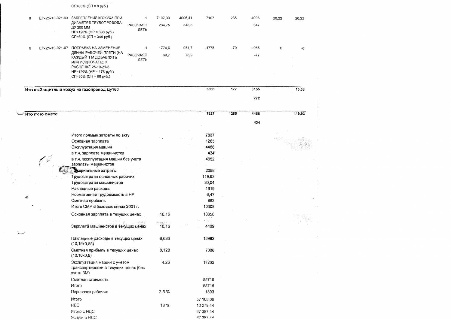 При добавлении ГЭСН выходят совсем другие значения НР и СП