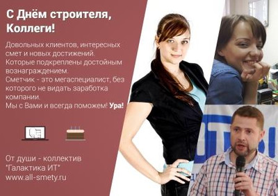 Добавлено (07.08.2015, 10:00) --------------------------------------------- Сегодня нам отметить нужно, День всей строительной семьи. Давайте пожелаем дружно: Заказы чтоб рекой текли.