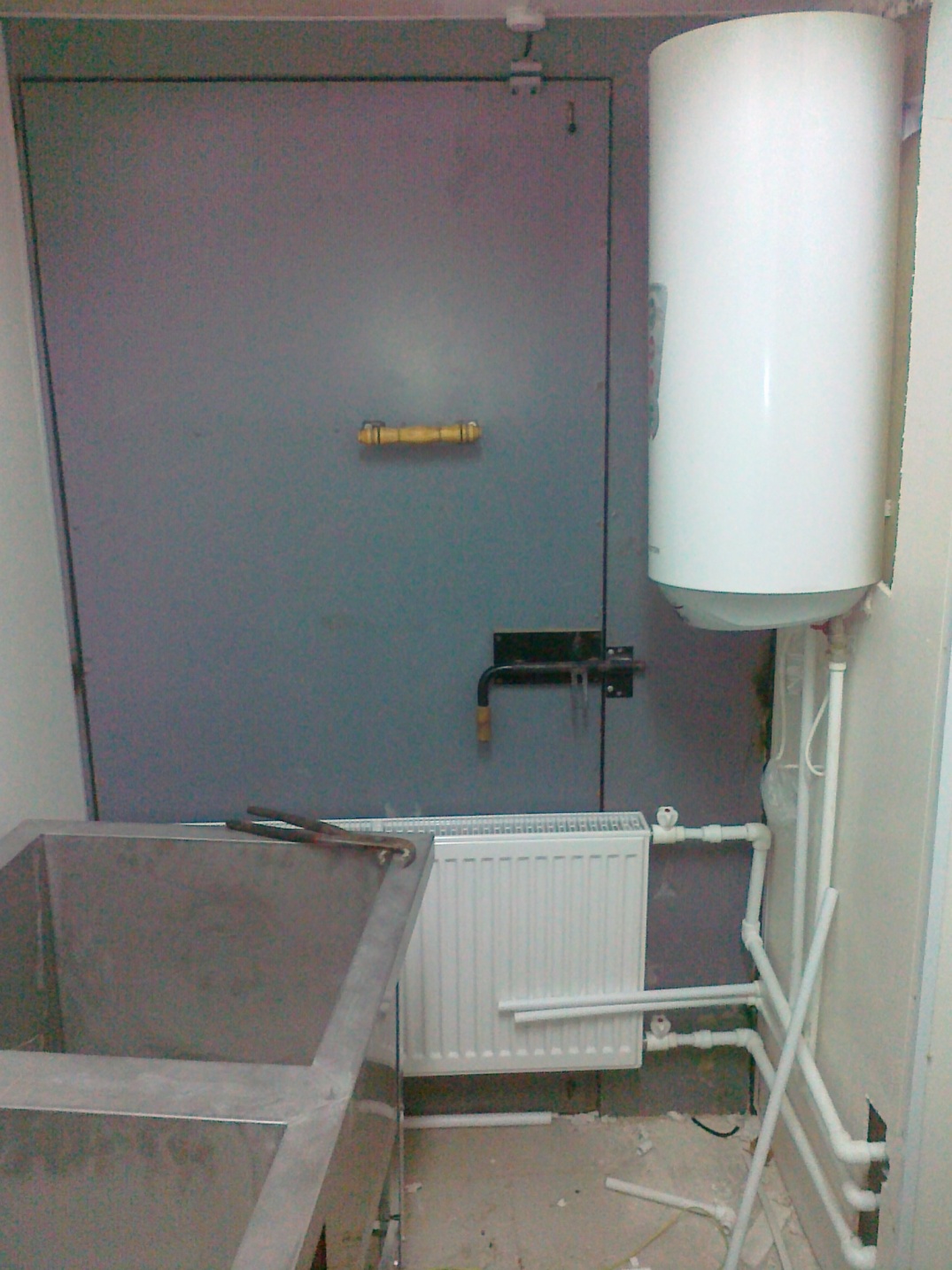 сразу признаюсь, сие творение моих рук дело, однако не подумайте, что я отчаянный бракодел или тупой. Всё сделано по чертежу... ну как чертежу?.., так красивая бамажка с цветной с красивой расстановкой сантехприборов. на фото-то они выглядят классно, но в реале-ужасть. Но это только видимый дефект, 4 батареи стоят в притык к холодильникам (война тепла и холода) хорошо хоть уговорил представителя заказчика убрать батареи из центра зала т.к. там нет ни одного стояка (да и смысла нет от батареи посередине магазина). так-что, как ответил мне представитель заказчика: чтобы небыло пи%дежу-делай всё по чертежу...
