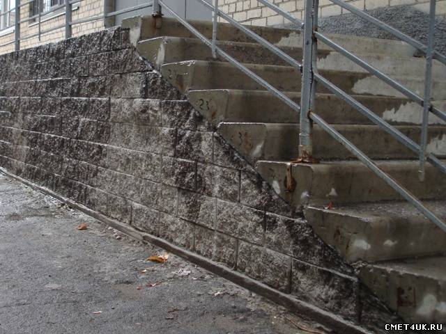 Облицовка камнем должна быть "за подлецо" с правым торцом ступеней т.е. находится под ступенью.