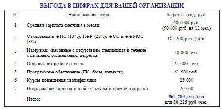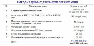 Издержки, связанные с отсутствием специалиста в течение отпускных, больничных, декретов 50 000 руб.