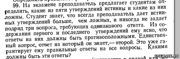 Из области - "занимаюсь на труде синхрофазотроном"... Пока узнал, что если второе утверждение "ложное" и студент это знает, то: + - ++- А вот если второе утверждение "истина"... То тут что-то куча вариантов...