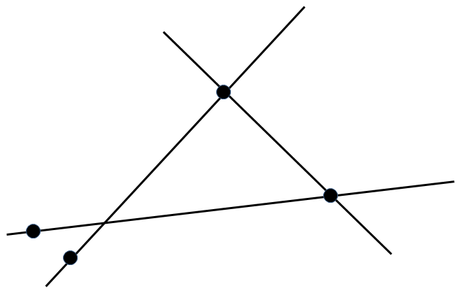 dozor, да! Единственно верное решение. А сейчас спорили с одноклассницей её. Так у нее оказалось та же задача звучит по другому: "Илья продолжил все стороны треугольника и отметил на каждой из них по 2 точки. Всего отметил 4 точки. Как он это сделал?" Почему и возник вопрос. С нашей формулировкой мы правильный ответ дали, а вот с их - ответа по-моему нет.