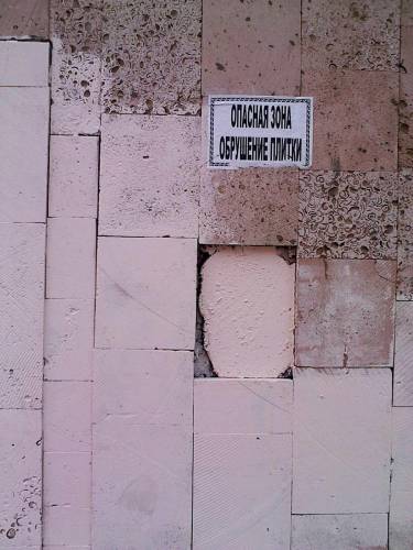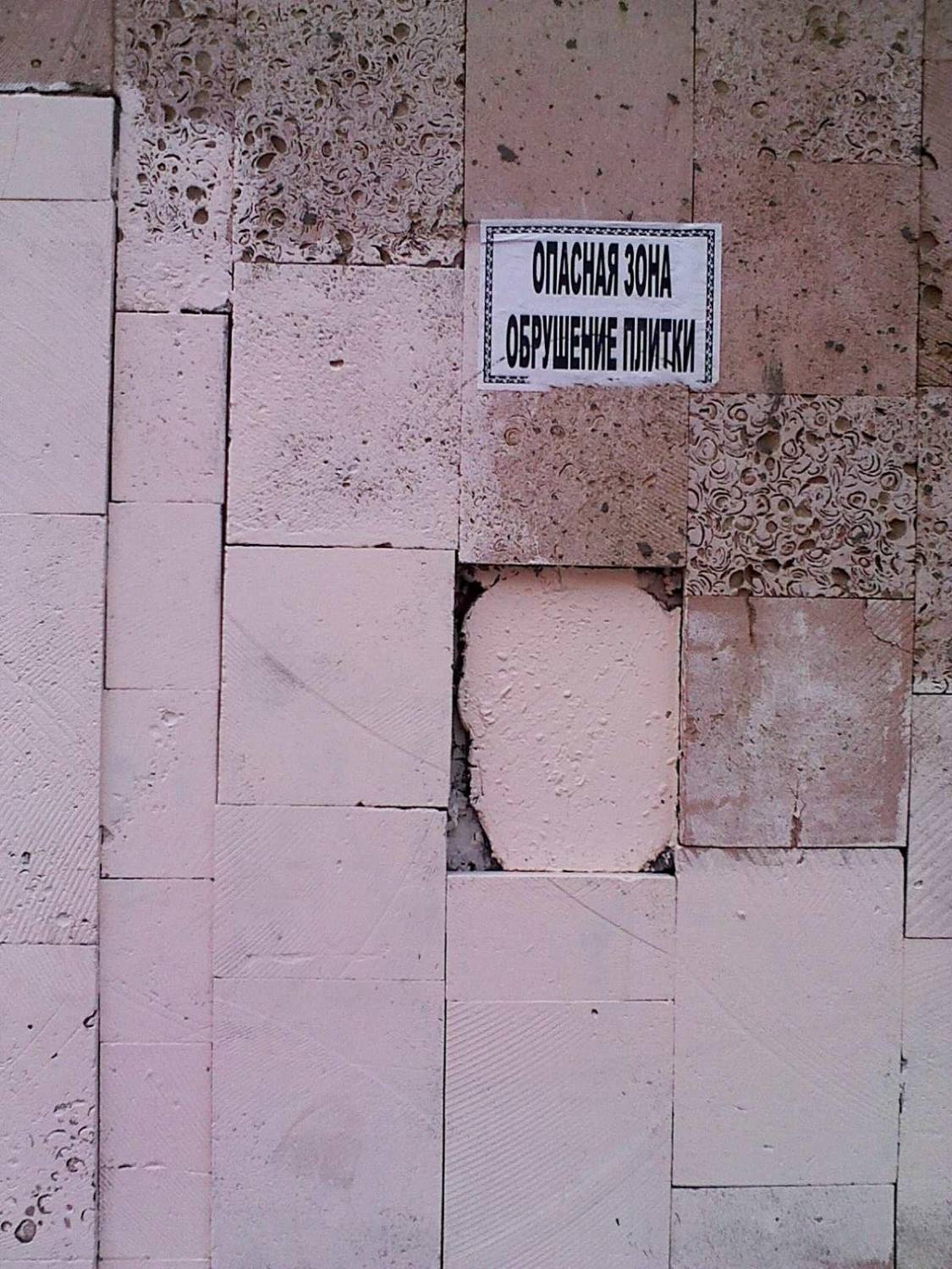 обрушение плитки и как с этим бороться ну и нарушение техники безопасности - нигде кроме предупреждающих табличек ничего нет - ни сигнальных лент. ни ограждений...