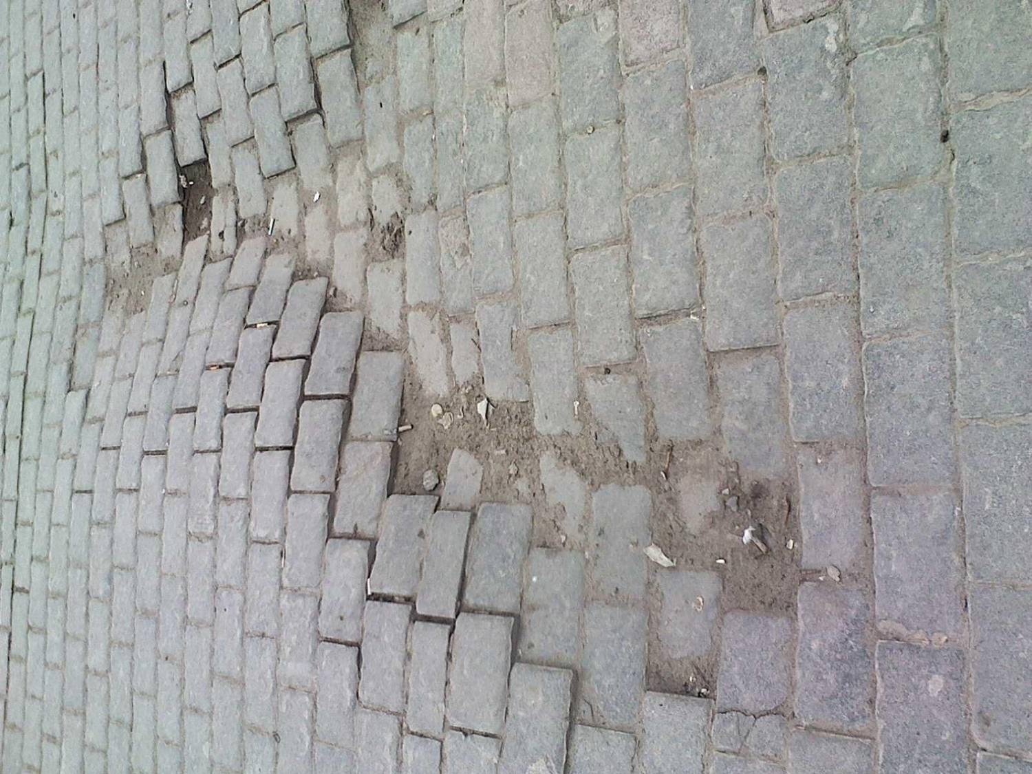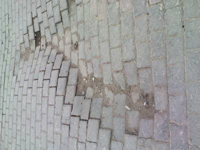 Вчера в чате речь зашла за тротуарную плитку. и навеяло так сказать... Вот по такой дорожке приходится ходить в поликлинику - центр города так сказать на первом фото - общий вид. на втором - ширина швов между плиткой - обратите внимание - специально поставила ногу. ну а на третьем - хорошо видно какой глубины швы. Так что на шпильках и каблуках да по темноте - ходить у нас в городе не рекомендуется