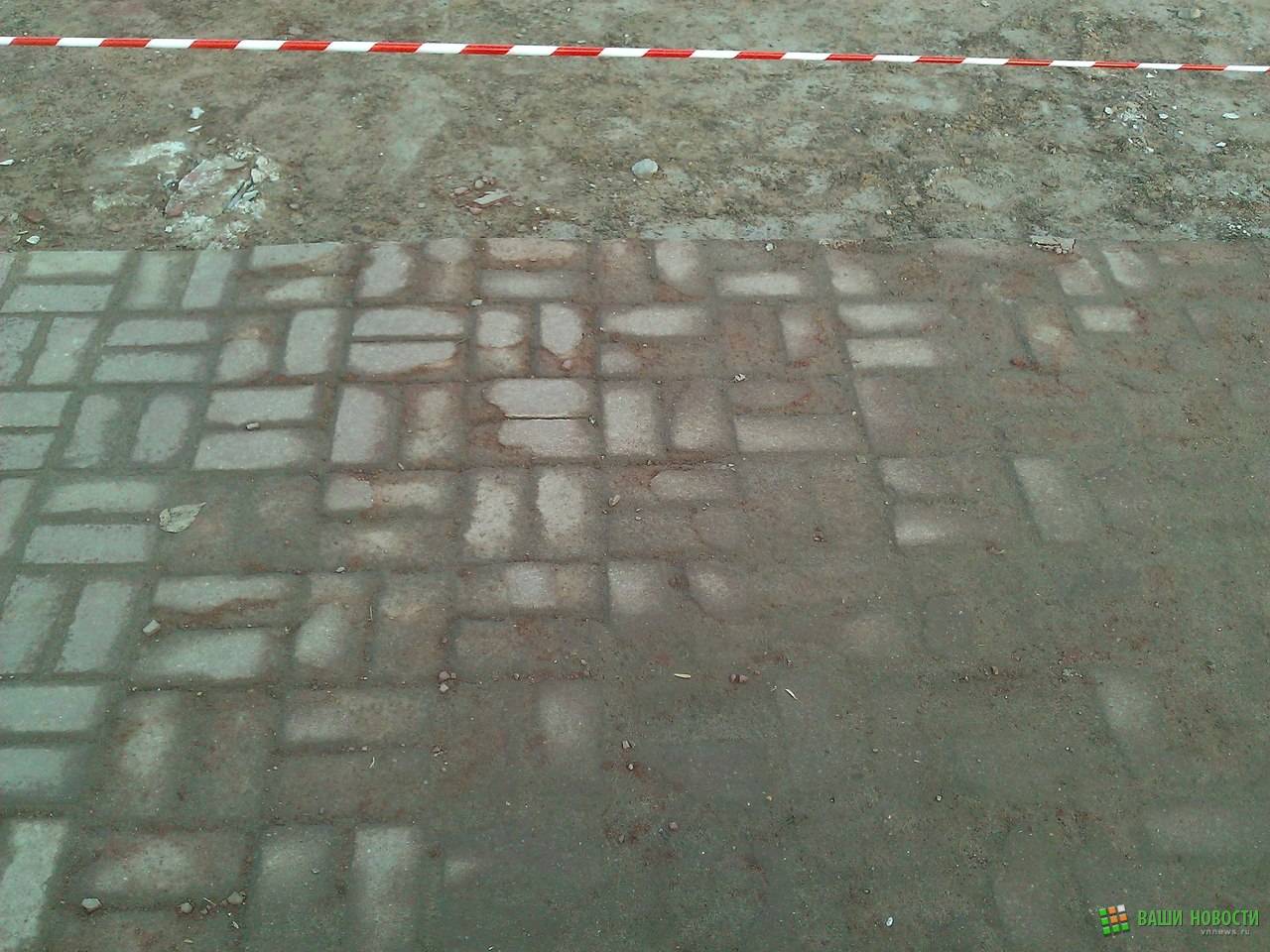 В последние дни грандиозные работы по замене тротуарной плитки развернулись у Стелы воинской славы в Великом Новгороде. Работы продолжаются уже несколько дней и, судя по словам прораба, работающего на месте, замене будет подвергнуто более 90% плитки. Неудовлетворительное состояние не так давно уложенного камня у памятника не раз отмечали городские власти. Прошлой весной они потребовали у подрядчика заменить наиболее поврежденные участки. Но эту зиму плитка всё равно не пережила и подрядчика вновь привлекли к гарантийным обязательствам. ... Представитель компании посетовал, что причиной такой сильной деформации уже бывшей тротуарной плитки является "суровая зима". "Зима была суровой и плитка дала такое выщелачивание", - сказал собеседник агентства.