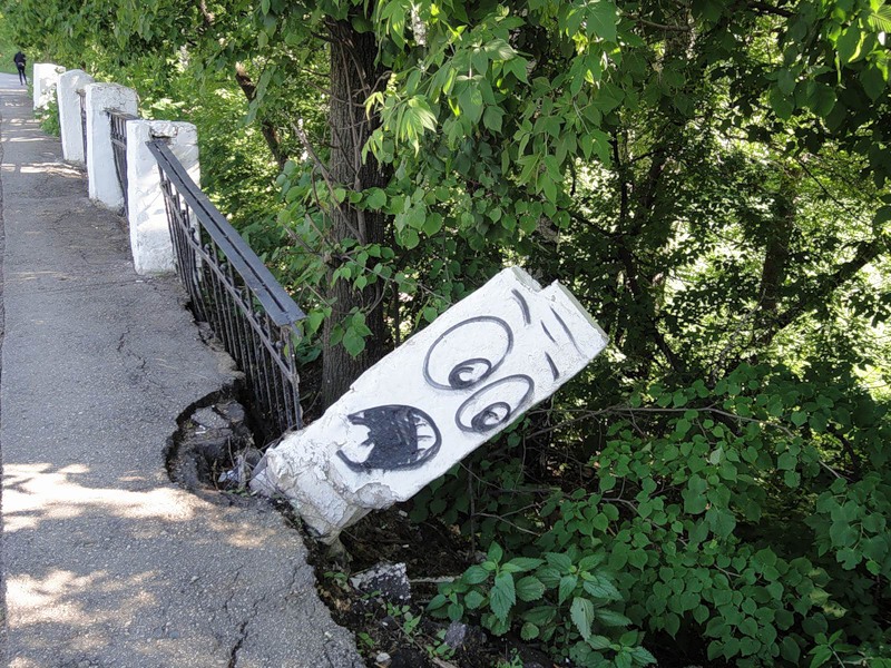 Извиняюсь, вставить не получилось хотела поделиться фото прикольное: название города, а под ним надпись - осторожно в городе мало асфальта