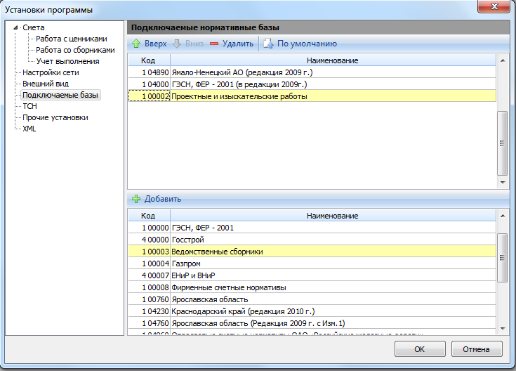 В «базе из региона» нет ФЕР – просто при выборе какой-либо региональной нормативной базы по умолчанию дополнительно подключается также федеральная база соответствующей редакции – старая либо 2009 года. В зависимости от истории работы на данном рабочем месте могут сразу подключаться еще какие-то дополнительные базы. Это регулируется в окне с установками программы на закладке «Подключаемые базы».
