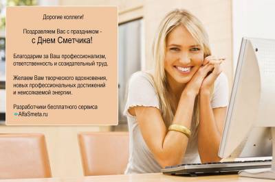 С днем сметчика вас, дорогие мои! Терпенья в работе и счастья в любви, Людей вам хороших желаю встречать, Средь цифр и расчетов своих не скучать. В работе, в любви вам успехов желаю. С днем сметчика вас! От души поздравляю!