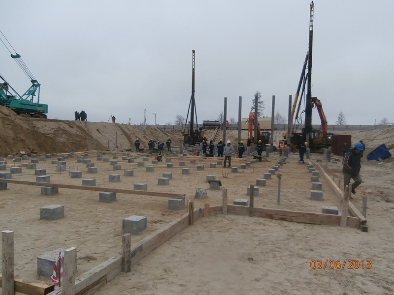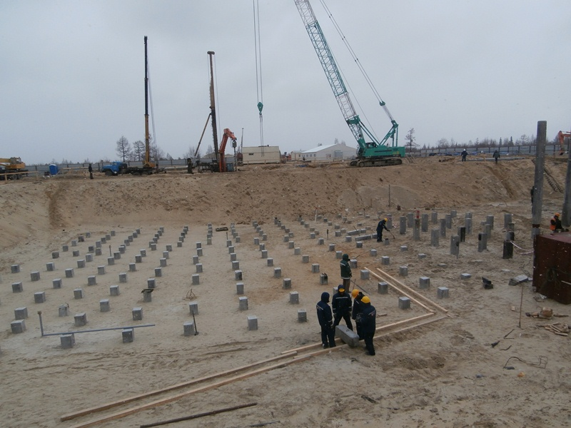 Вот как то так Утепление делаем, что бы внизу вечная мерзлота не таяла от тепла здания.