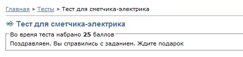 Но: Тест для сметчика-электрика Во время теста набрано 25 баллов Поздравляем. Вы справились с заданием. Ждите подарок