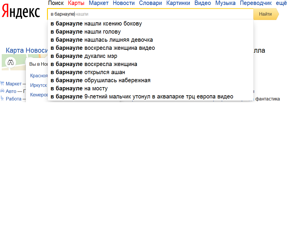 abk63, я думаю, Mursik повторила нашу игру, для которой была создана эта тема. В поисковике набираешь свой город и вылезают смешные предыдущие запросы. Посмотрите эту тему сначала.
