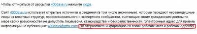 Трогательна забота сайта http://400days.ru о ближнем. Просят не отправлять информацию со своих рабочих мест и рабочих адресов. В рассылке от 17.01.2016. Только сегодня заметила на старой почте.