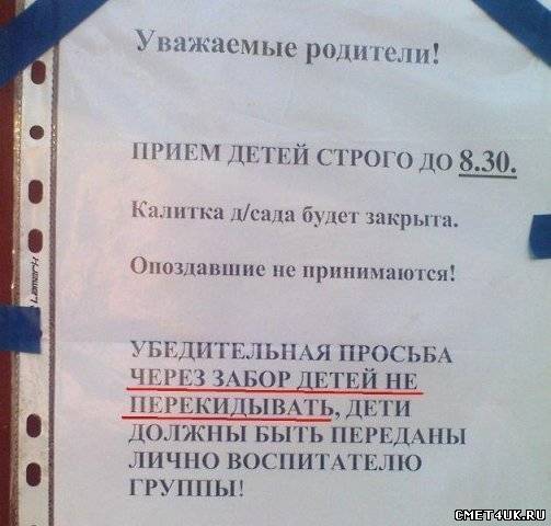 Добавлено (03.09.2010, 11:05) --------------------------------------------- Парень пристаёт к девушке: - Девушка, как вас зовут? - Отстань! - Да ладно - как зовут такую симпатичную девушку? - Не понимаешь, что ли - отстань! Парень, раздражённо: - Не хотите сыру? - Нет. - Странно - такая крыса, а сыру не хочет! ***************************************************** Работал на маршрутке №11, а у нас маршрут пол пути совпадает с №1, и вот садятся 2 пьяных мужика. Едем нормально, культурно, тихо, но после поворота на свой маршрут - расходимся с №1 и тут один из них начинает орать: "Шеф, мы куда едем? Куда везешь?" Ну я ему спокойно обьясняю, что №11 идет в микрорайон, а он что думал? Мужик секунд 10 соображает, а потом как даст второму подзатыльник, и орет на всю маршрутку: "Я же тебе говорил, первый, а ты все -двоится, двоится..." ********************************************************* Эта история произошла в 1982 году. Она очень похожа на анекдот, но я был свидетелем лично. В автобус вбегает пассажир и начинает что-то искать. Сердобольные бабушки его спрашивают: - Что вы ищете? - Да зонтик я тут забыл. В это время автобус закрывает двери и поехал. Пассажир неожиданно кидается на двери и кричит, чтобы ему открыли, при этом еще и стучит по ним. Те же бабушки начинают его успокаивать, что следующая остановка очень недалеко, и вообще он зря так волнуется. На это мужчина в истерике сообщает: - Я портфель на остановке оставил! ********************************************************* Ни любящая жена, ни любимые дети, ни интересная работа никогда не заменят полноценного отдыха от них! ********************************************************* Тележурналисты берут интервью у молодой симпатичной девушки: - А вы можете вспомнить, какой день был для вас самым счастливым днем в жизни? - Вы знаете, - теряется девушка, - это был не день... ********************************************************* - Скажи мне, кто ты, и я скажу, кто твой друг! - Я - миллионер! - Я твой друг!