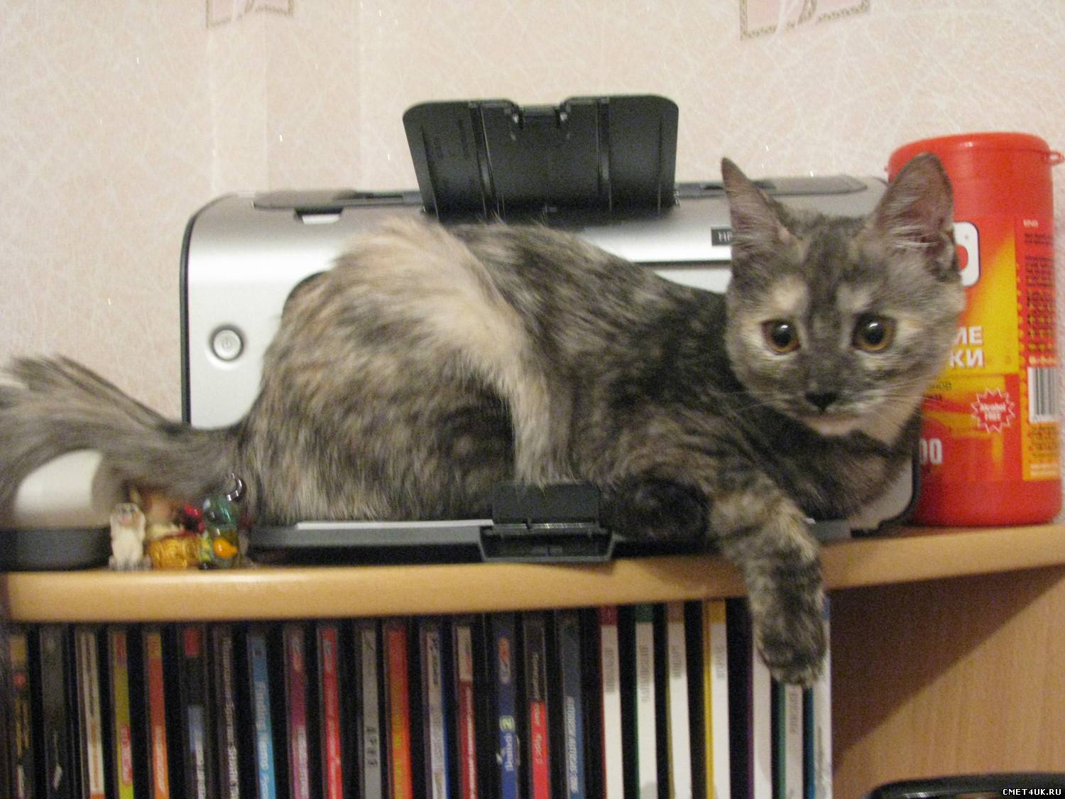 Вот сейчас сижу, работаю а наша Сонька оседлала принтер и наблюдает, не удержался сделал снимок. В продолжение предыдущих сообщений, не могу не похвастаться: ходит на унитаз, при этом обязательно требуется чтобы было смыто немедленно и у нас с женой уже наладилась очередь, кто ночью встает и идет с кошкой в туалет, приходит в 4-5 утра и мяукает пока кто-нибуть не встанет.