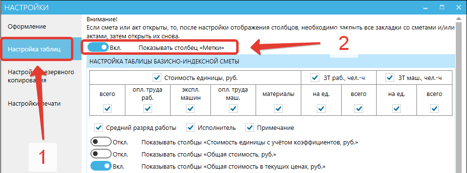 6) Выполнять фильтрацию по цветовым меткам можно и в меню «Настройки» Фильтра сметы