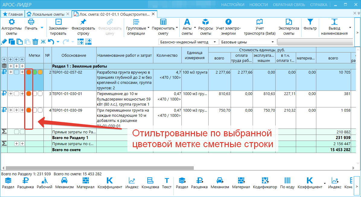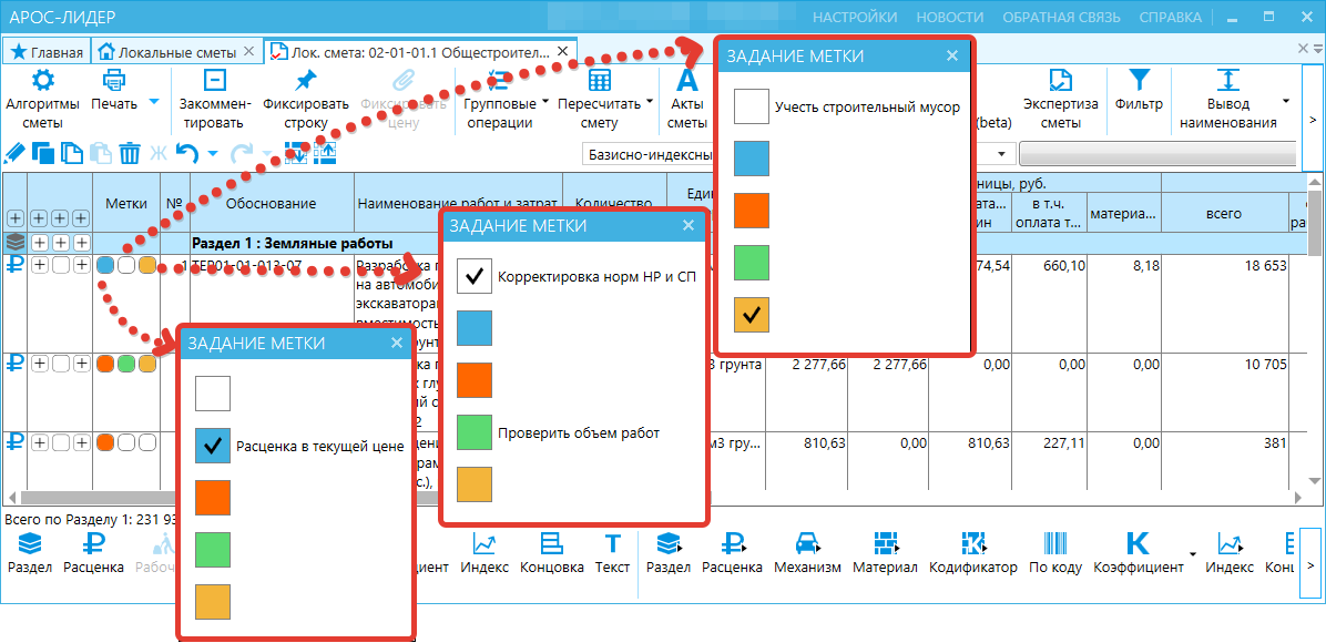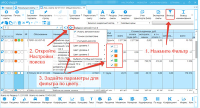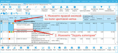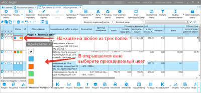 Присваивание сметным строкам цветовых меток в ПК "АРОС-Лидер 2.0"