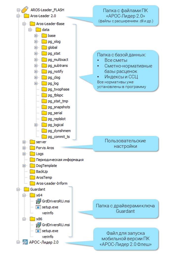 В состав программы «АРОС-Лидер» версия Флеш включены: • программа «АРОС-Лидер», • нормативные базы (которые вы приобретали) • индексы и ССЦ (которые вы приобретали) • Драйвера для работы с 32-разрядными и 64-разрядными операционными системами