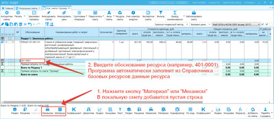1.2. Добавление материала и механизма в смету путем ввода обоснования