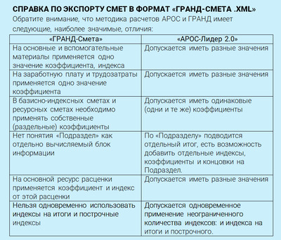 СПРАВКА ПО ЭКСПОРТУ СМЕТ В ФОРМАТ «ГРАНД-СМЕТА .XML» Обратите внимание, что методика расчетов АРОС и ГРАНД имеет следующие, наиболее значимые, отличия:
