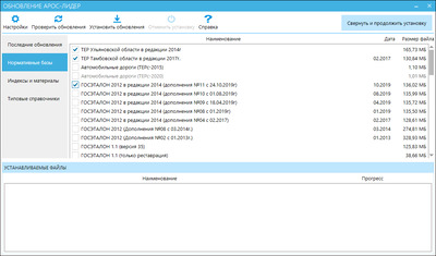 Новое Автообновление в ПК "АРОС-Лидер" Обновление индексов и ССЦ, нормативных баз расценок (ТЕР, ФЕР, ГЭСН и другие), стандартных справочников программы (коэффициенты из общих указаний, демонтажа, из ТЧ; справочника НР и СП)