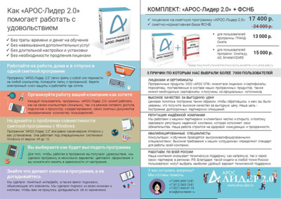 Уважаемые коллеги! ООО «АРОС СПб» сообщает о выходе сметной программы «АРОС Лидер» версии 2.0.