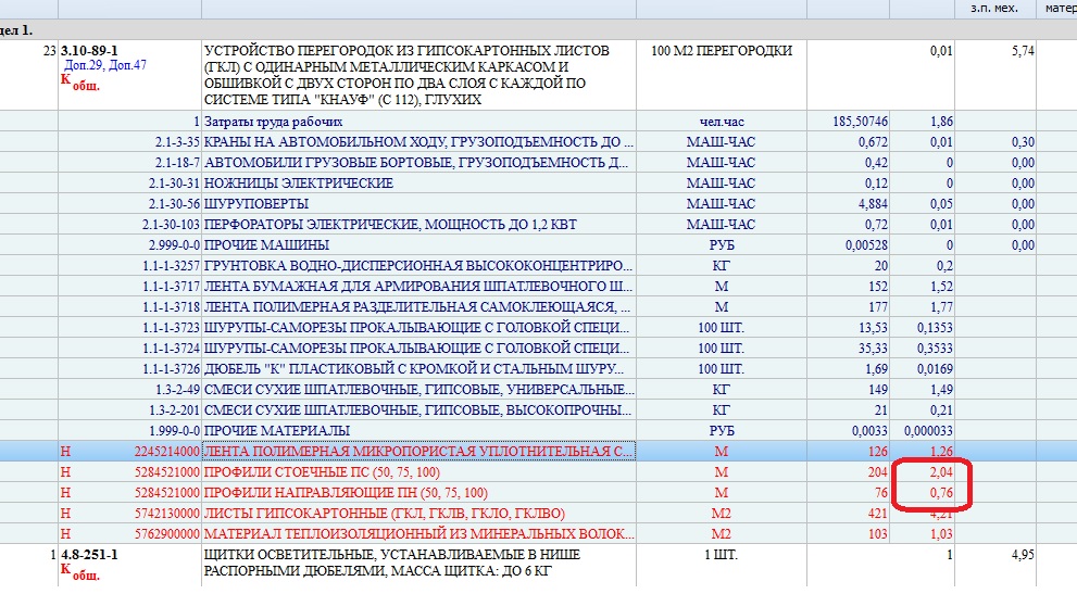 Берем расценку 3.10-89-1, смотрим кол-во профиля на 1м2: