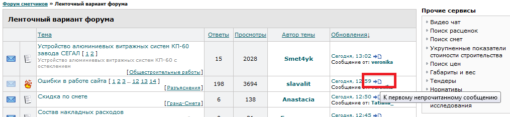 smet4uk, странно... Когда я нажимаю туда, где указано на вашем скрине, то у меня появляется надпись "К последнему сообщению", а не к первому. Да я и не жду никогда, когда эта надпись появится, просто нажимаю сразу, и попадаю в последнее сообщение темы.