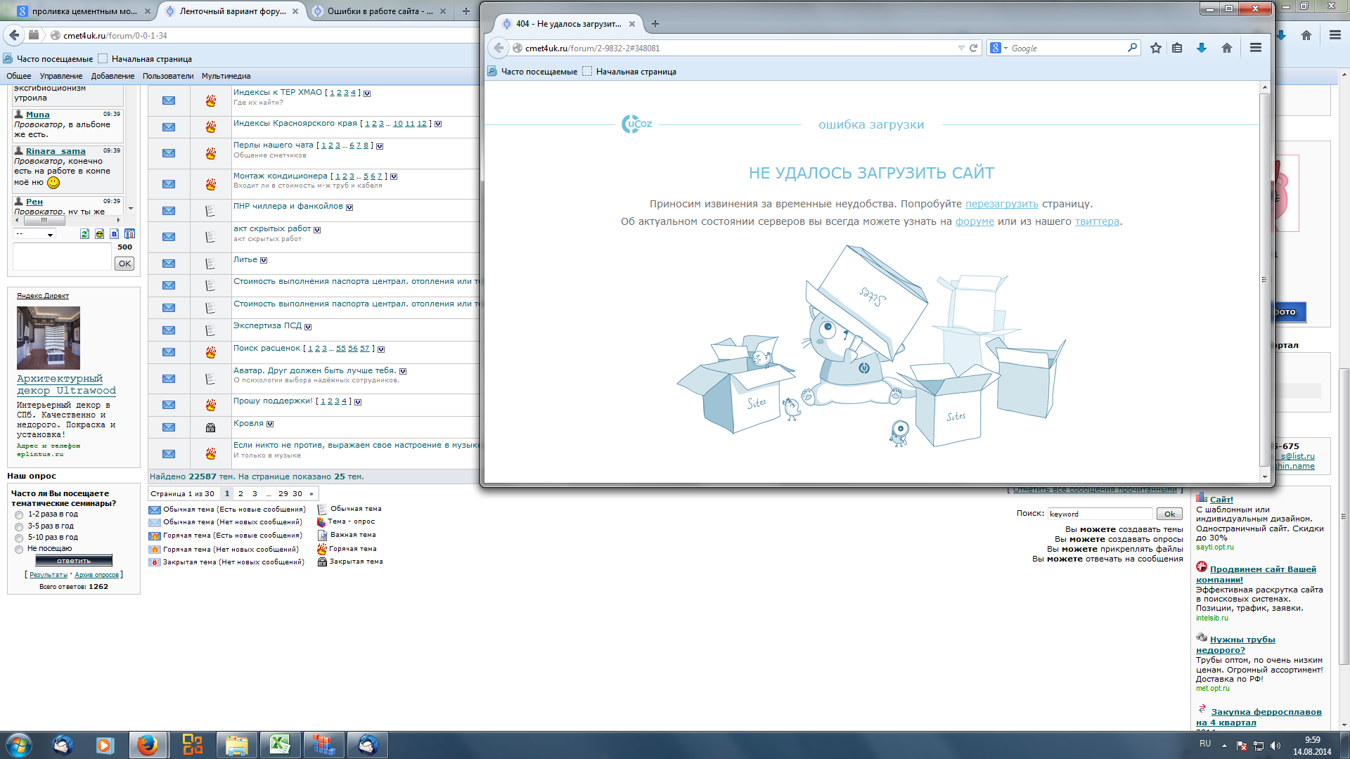 уже второй день на сайте при открытии некоторых тем вылазит ошибка 404. не удалось загрузить страницу. вот сейчас упорно не открывается эта тема http://cmet4uk.ru/forum/2-9832-2#348081