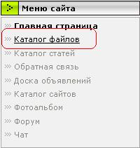 3. Слева в окне "Меню сайта" нажмите "Каталог файлов"