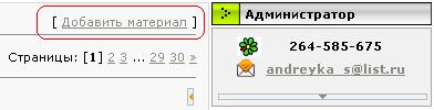 6. В среднем окне в верхней части странички нажмите "[ Добавить материал ]".