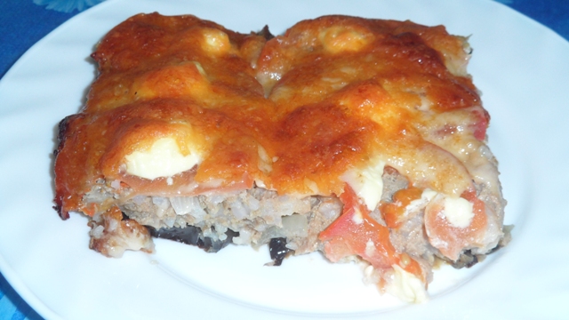 В субботу хотела сделать баклажаны по рецепту №3, но домашние потребовали сделать с мясом. В итоге получилась вот такая запеканка.
