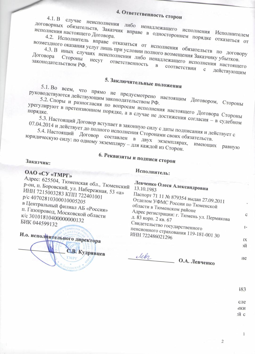 Тюленин, так спор в  этом и заключается,  что они мне срезали сумму договора в  Акте подписанном ИМИ в  два раза. Изначально было сказано я  выполняю задания в течении срока договора - 1  мес. В течении этого времени они направили 9 проектов,  которые я  осметила и отправила им! За 9 объектов  они д.б.  заплатить 34 тыс. Я  им отправила по почте в  екселе (без  своей подписи) акт выполненных работ на 34 тыс. ,  чтоб они подписали и потом приехала я  подписала и получила расчет. Акт подписывать они не стали и позже прислали свой вдвое меньше,я  не стала подписывать и пошла  в суд надеясь на справедливость,  наивная)) в итоге осталась пока ни с  чем. впереди вышестоящая  инстанция...