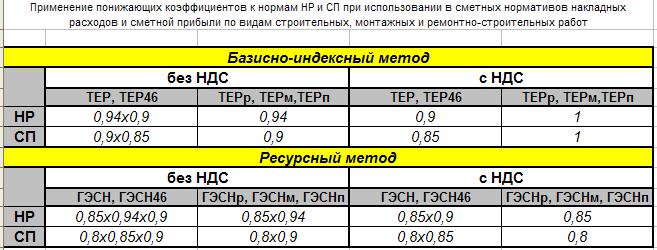 строительстве** Дополнительные коэффициенты к НР и СП для предприятий, работающих по упрощенной системе налогообложения Общий к СМР По статьям затрат, ресурсный способ Новое строительство, реконструкция Не применяются НР=0,85 СП=0,8 (за исключением работ при сооружении мостов, тоннелей, метрополитенов, атомных станций и сооружений по переработке