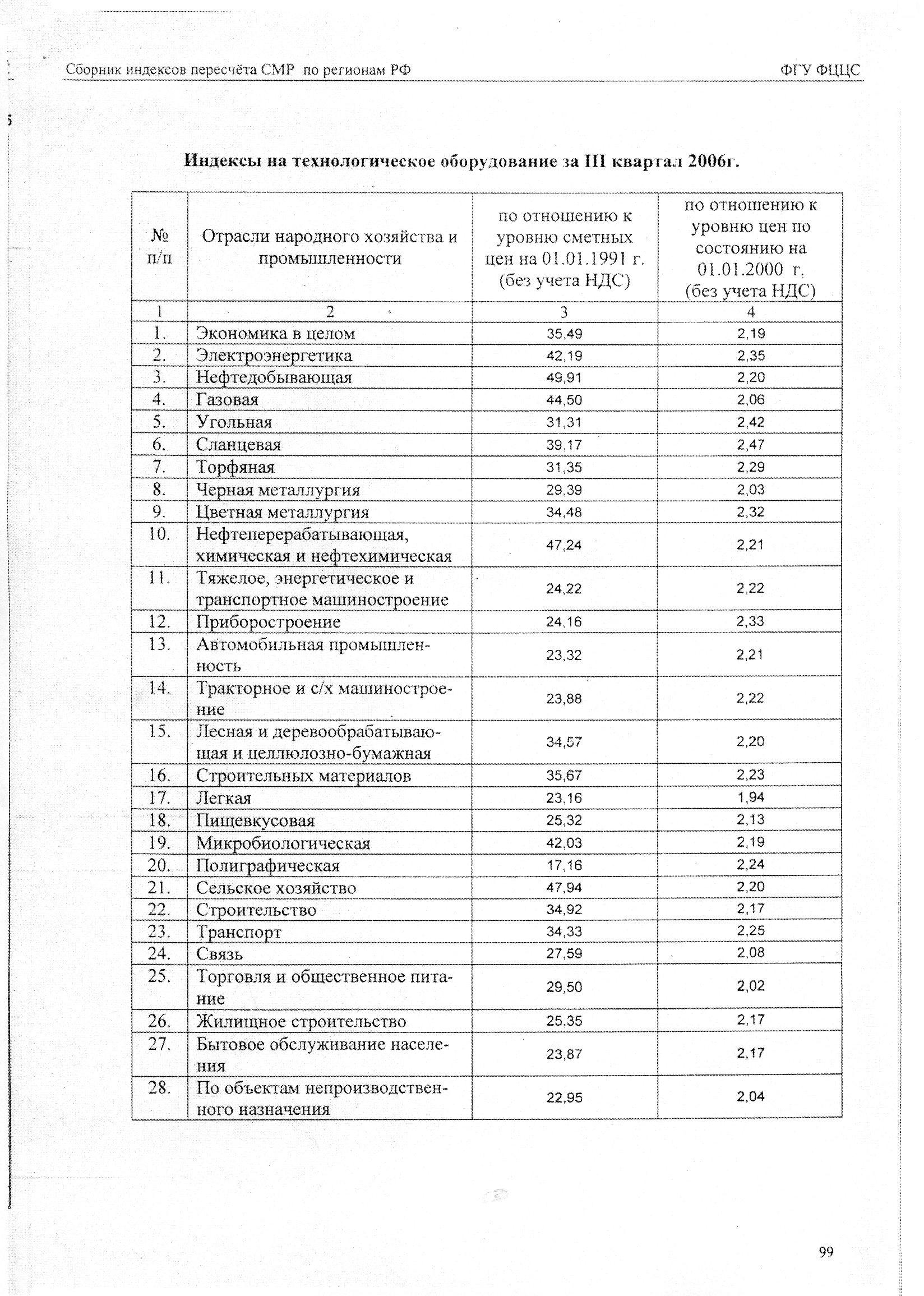 индексы на оборудование 3 кв 2006 года