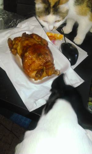 купила курочку Беллочке! ели все - Белла, я и кошки =)
