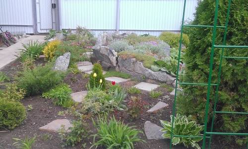 Главная » Фотоальбом » Разное » на входе тюльпаны, хосты в камнях
